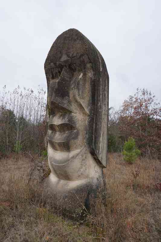 This massive cement head poking out of the ground can be found about a hundred yards away in the woods on the north side of Highway 71 east of De Queen. You can see it from the road, but there's a path that leads right up to it, beginning in the parking lot of the now-closed Slow Flea Market.